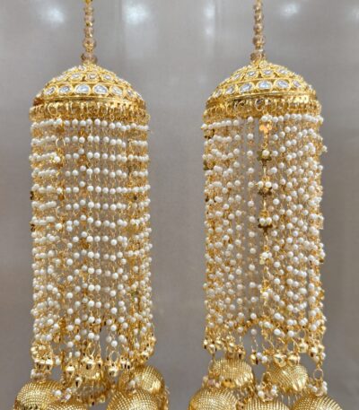 Triple-Layer Bridal Klire with Pearl Strings and Dome Motifs