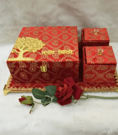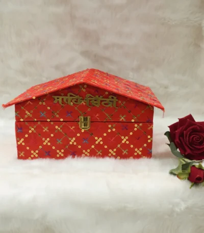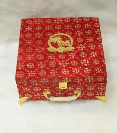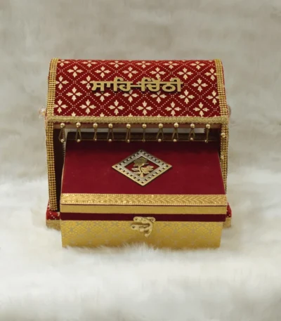 Red Royal Trunk Sahe Chithi Box with Golden Handle