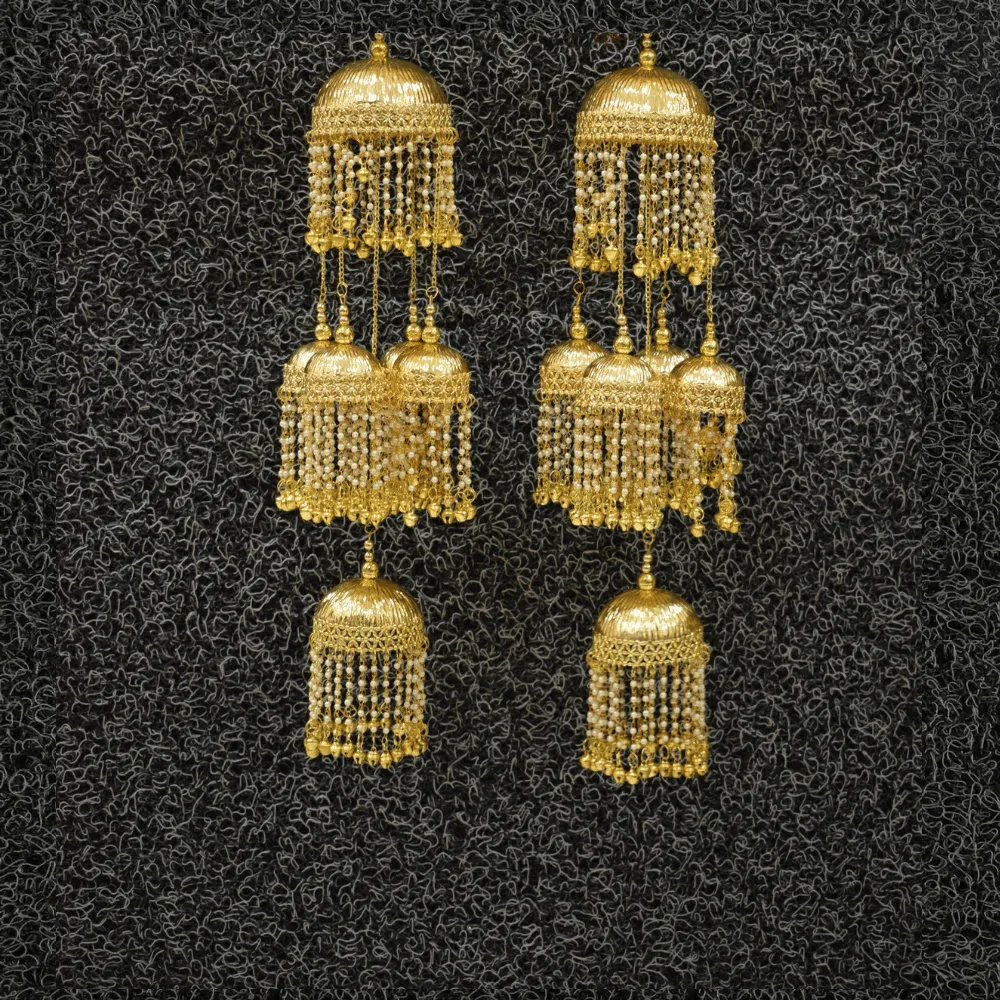 The Classic Dome Pearl Kalira is a masterpiece of traditional bridal elegance. Designed with a finely detailed golden dome embellished with intricate motifs and soft stone highlights, it reflects the richness of Indian craftsmanship. From the dome flow multiple layers of lustrous pearl strands that sway beautifully with each step, symbolizing blessings, prosperity, and the start of a joyous new journey.