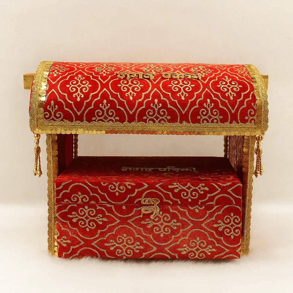 Its symbolic house-like shape represents family, tradition, and new beginnings—making it the ideal choice for formal wedding invitations and gifting during Anand Karaj ceremonies.